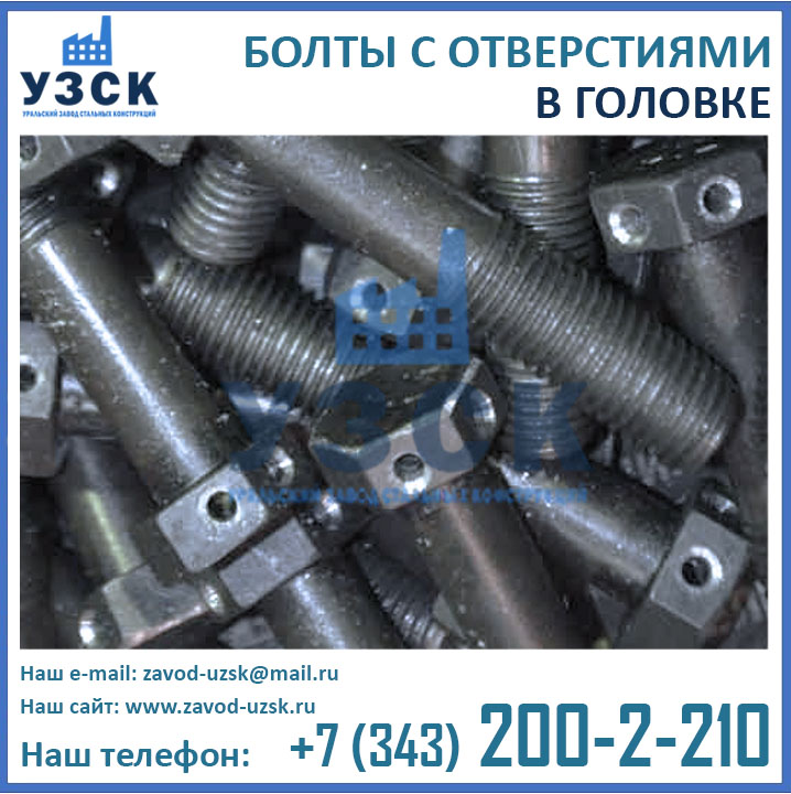 Уральским Заводом Стальных конструкций налажено производство болтов с отверстиями всех типоразмеров от М10 до М42 следующих модификаций: