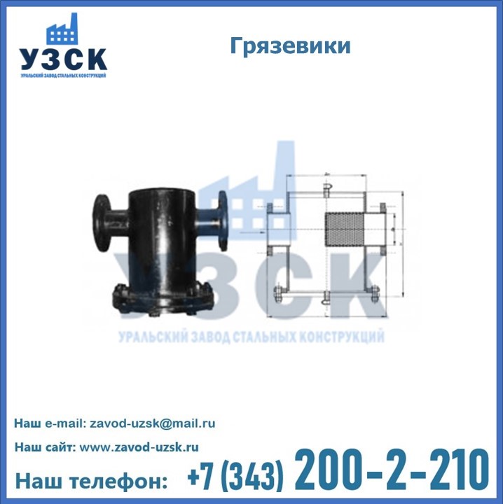 Уральский Завод Стальных Конструкций занимается производством и реализацией грязевиков в городе Нальчик, в наличии устройства горизонтального и вертикального типа, соответствующие всем требованиям и стандартам, в том числе условиям «Правил устройства и безопасной эксплуатации».